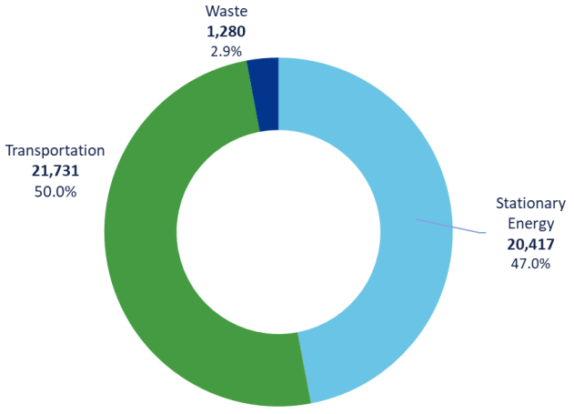 Compared to the 2018 inventory, emissions in this 2022 estimate are lower though the methods between the two estimates differ. Two key differences lead to reduced emissions in the 2022 estimate. First, emissions from electricity have declined over time, reducing emissions from buildings. Second, the 2022 estimate of vehicle miles traveled is 15% lower than the estimate used in the 2018 inventory. Additional differences in assumptions may contribute to the significant decline in transportation emissions. Many other categories analyzed in both inventories suggest small declines.